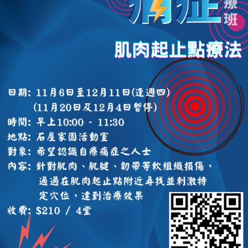 日期:11月12、19、26日、12月3、10日 禮拜三(共5堂)
