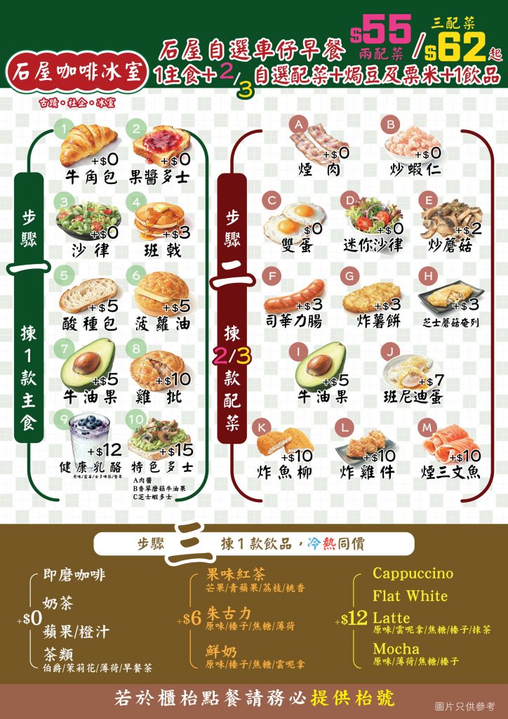 未分類石屋咖啡冰室餐單 Stone Houses Cafe Menu Posted on 2022-09-072026-01-29 by 石屋家園 歡迎瀏覽以下六款餐單 Explore our six menus below 1)全日早餐 All Day Breakfast 2)恆常餐單 Regular Menu 3)假日特選 Weekend Specials 4)甜品 Desserts 5)車仔早餐 Build-Your-Own Breakfast 6)飲品 Drinks 以下為假日特選項目,每週2款,歡迎先透過WhatsApp 23250111 查詢 Check out our Weekend Specials! We offer two different items every week. Feel free to WhatsApp us at 2325 0111 to see what’s on the menu : ) 假日特選項目每週2款,歡迎先透過WhatsApp 23250111 查詢 石屋家園 惡劣天氣安排指引(課程/活動) 石屋到會餐單 CATERING MENU
